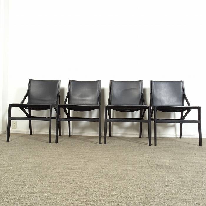 ●Item name:471 PILOTTA ピロッタ アームレスチェア 4脚セット / X黒本革